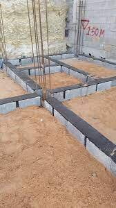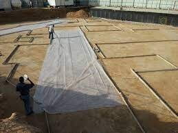 والصحيح أن يتم وضع مشمعات نايلون فوق التراب قبل صب طبقة النظافة، ليمنع امتصاص الدفان لماء الخرسانة ومنع الخرسانة من الامتزاج بالتراب.